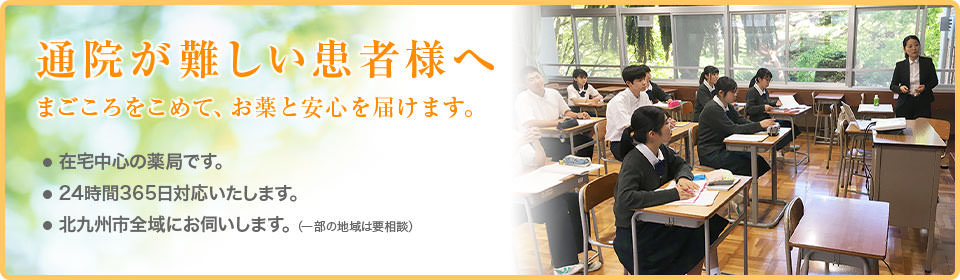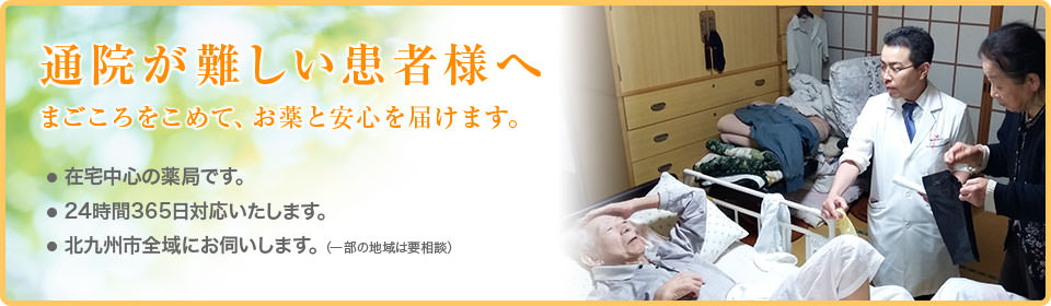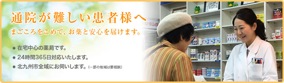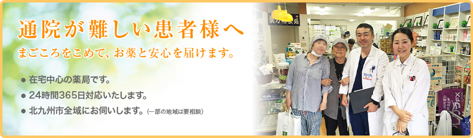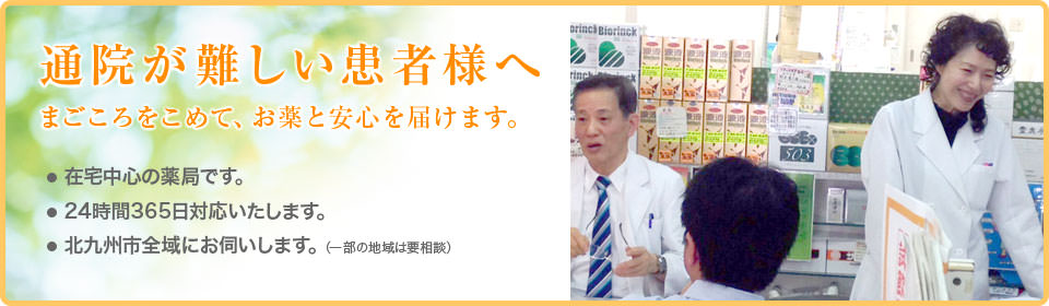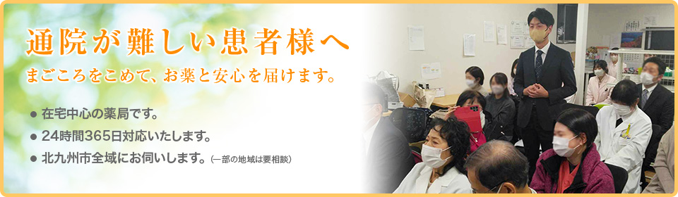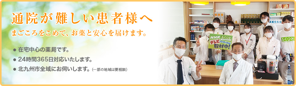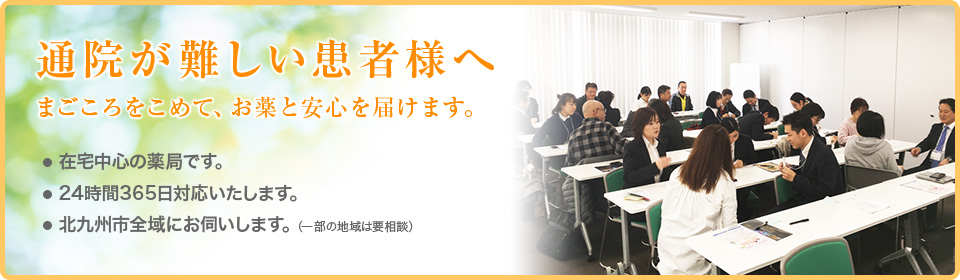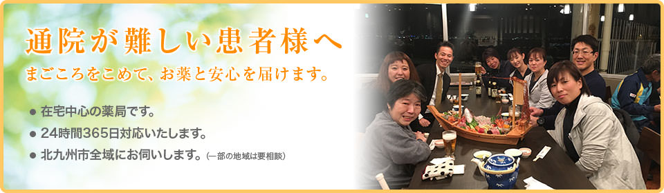 この地元、北九州において今から必要とされる薬局、地域に密着した在宅の調剤薬局として外来の方はもちろん、今までお世話になった方からその周辺の方まで全てをサポートできる薬局を目指します。「在宅 北九州 調剤薬局」といえばと言われる存在になるためチーム一丸となって頑張っています。