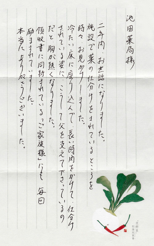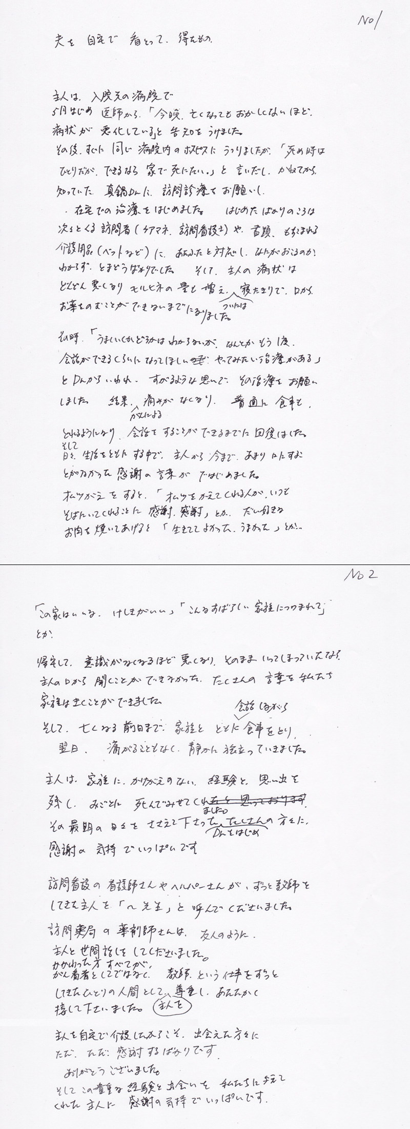 2007年の年末、父が二度目の病気で倒れた。奇跡的に命だけは助かった父だが、原因不明の病と下半身の後遺症に加え喉に障害が残り、食べる事と喋る事を奪われた。そう言えば一人の写真家が「両親が元気な時にしか好き勝手に出来ないからね」と言った事を思い出した。2008年3月、東京での生活に別れを告げて北九州に戻った。父が生まれ育った故郷。そして私自身が生まれ育った故郷を、この目でしったりと焼き付ける為に。