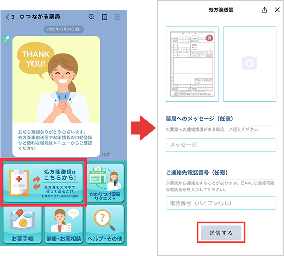 ② 処方箋を送信します。