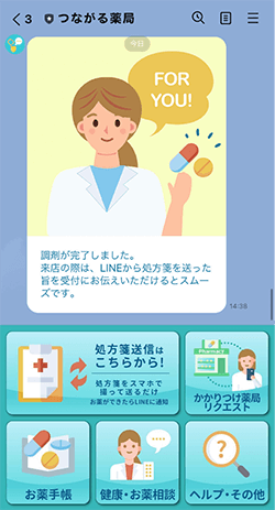 お薬の調剤が完了したらトーク画面に通知が届きますので、